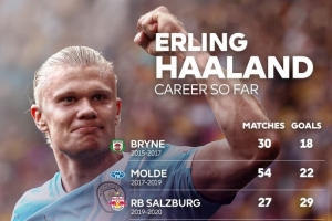 开云线上入口-英超官方晒哈兰德进球分布:曼城149场127球,挪威队45场48球